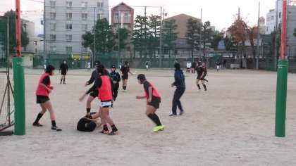 ラグビー部が練習中!