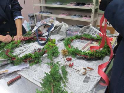 昨日、文化部女子チームでは、華道の先生に来て頂き、X'masリース作りにチャレンジしました。
