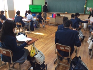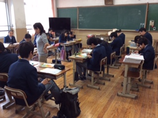 2年生の授業の様子です。2組は家庭で、献立づくりの授業。何をどのくらい食べればよいか、ほかの家族の方々の事も考えていました。3組は国語で、敬語の学習。尊敬語、謙譲語、丁寧語について学びました。4組は歴史で、桃山文化についての小テストなども行いました。