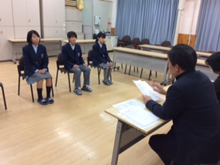2年生めんせつ検定の様子です。緊張してのぞみました。