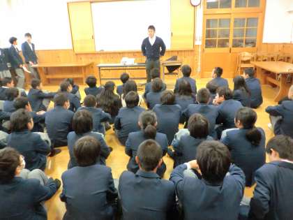 冬休みに向けて、「健康面」「学習面」「生活面」などの諸注意をしました。