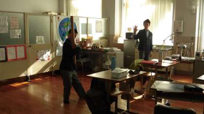 教室に戻ってきたところです。