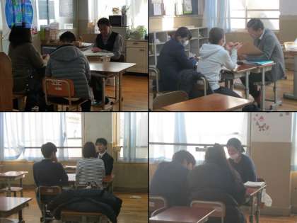 本日ですべての懇談が終わりました。寒い中、来校いただき、たいへんありがとうございました。この懇談で進路希望が確定し、いよいよあとは出願を残すのみです。不安なこともまだまだたくさんあるとは思いますが、3年生教職員一同、3年生の進路実現にむけて全力で取り組んでいきたいと思います。今後とも、どうぞよろしくお願いいたします。