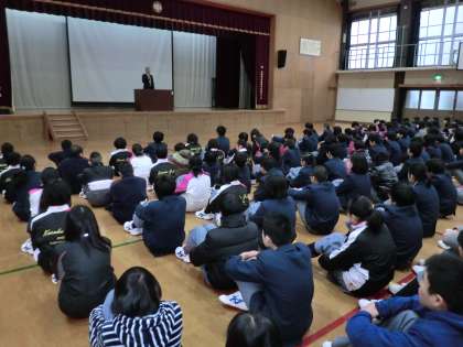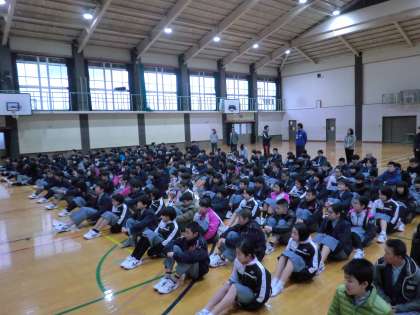 1時間目は、全校集会で校長先生からのお話がありました。