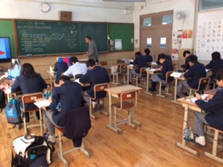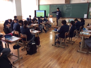 2年生の授業の様子です。2組は保健で、環境への適応能力について学習。身体はどのような変化が起こるのか考えていました。3組は国語で、君は最後の晩餐を知っているか。文章の中の評論文としての特徴をつかんでいました。4組は数学で、平行四辺形の性質を利用して、四角形を証明していました。