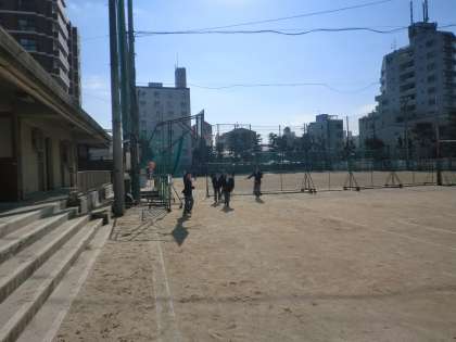 昼休みのグランドにもたくさんの生徒がボール遊びに出ています。