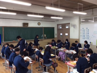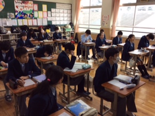 2年生の授業の様子です。2組は数学、どんな四角形かな・・・平行四辺形について証明していました。3組は英語、今週はALTウィークです。5文の詩を英語で作って発表していました。4組は歴史、幕府政治の改革を理解するため、8代将軍徳川吉宗について学習していました。