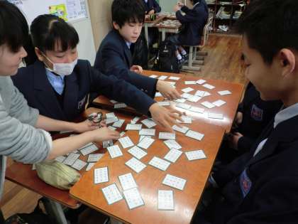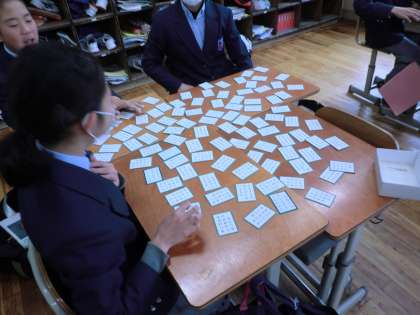 1時間目の1−2の国語の百人一首の様子です。