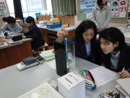 下:1−4理科(理科室で浮力の実験を行っていました。)