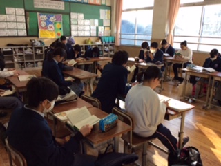 2年生朝読書の様子です。風邪が流行っていますが、みんな朝一番頑張ってます。