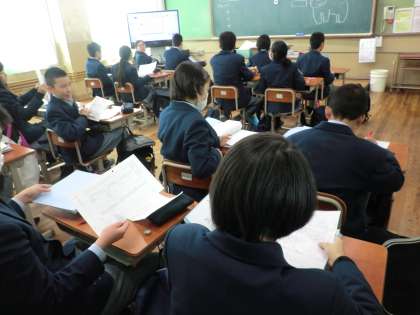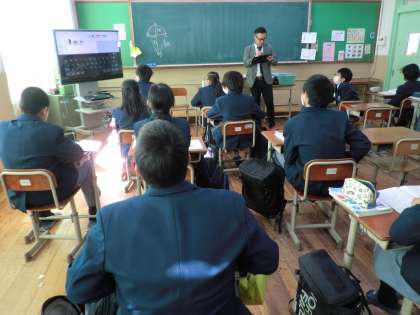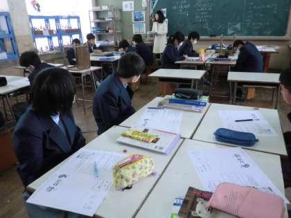1年2組:英語「道順をたずねたり、教えたりできるようになろう」(写真中)