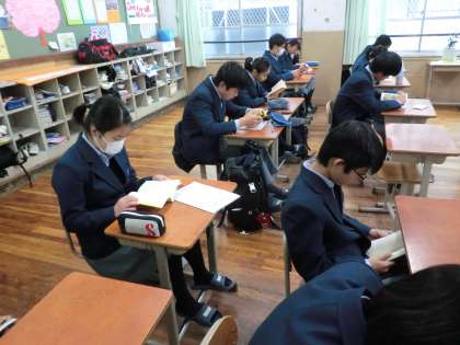 朝は雪が積もっていましたが、今日も朝読書で元気に始まりました。