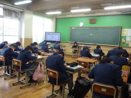 2組は数学の授業、3組は英語の授業、4組は国語の授業です。