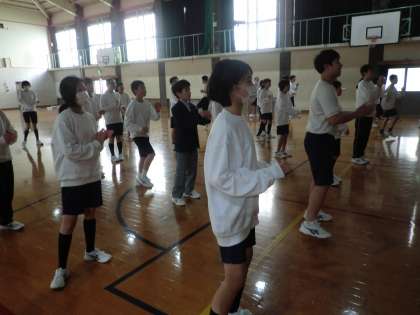 2時間目の1年生の授業は、学年男女合同でのダンスの体育でした。