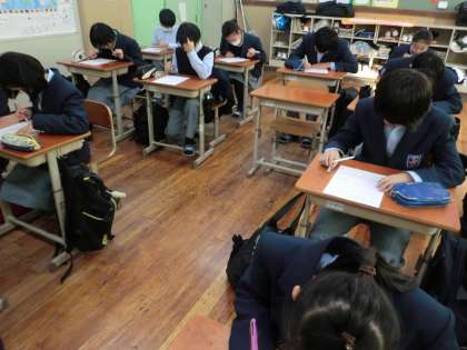 今日の終学活では、先週1週間分の宿題を確認するテストを実施しました。