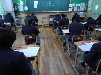 1時間目の国語のテストが始まっています。