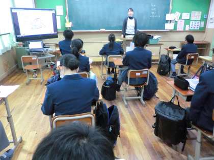 1年4組:家庭科「健康で快適な住まい方のチェック」(写真上)