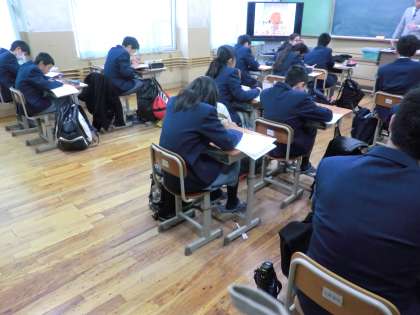 1年3組:音楽「アルトリコーダーのテスト」(写真下)