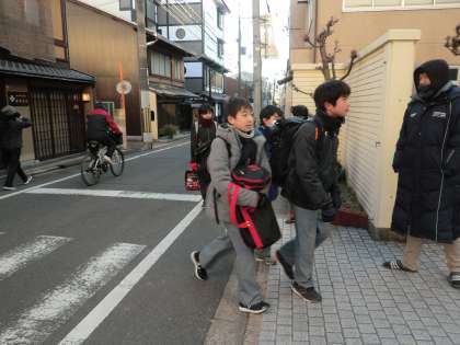 寒い朝ですが、今日も元気に登校してくる生徒たちの姿です。