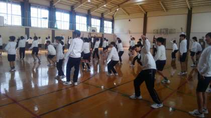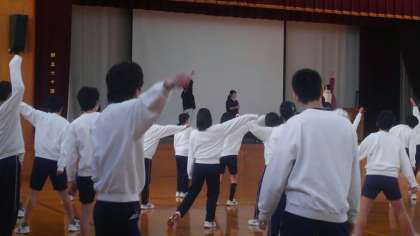 2年生で新たにチャレンジしている「京炎そでふれ」の学年練習が、今日もありました。今日はも「京都の通り名歌」に合わせて踊るパートや、「歌舞伎」と呼ばれるパート等を練習しました。教えに来て下さっているボランティアの大学生の話では、一曲の内の半分以上の振り写しは、もう済んでいる、ということです。