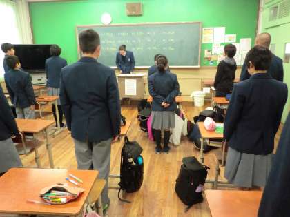 写真は、上から1−3、1−4、1−2の終学活の様子です。