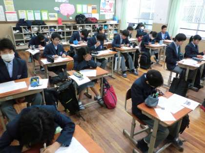 今日の終学活では、先週の宿題のまとめテストを行いました。