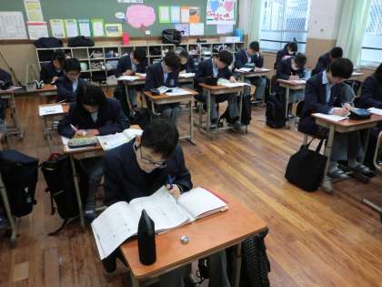 いつもの朝読書は、今日からテストが終わるまで朝学習に切り替えて臨みます。
