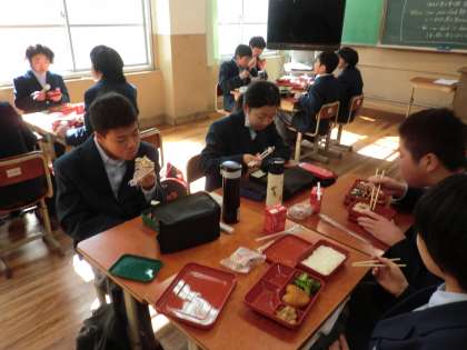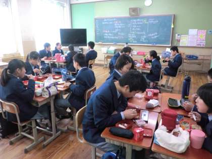 昼食時間の教室のようすです。