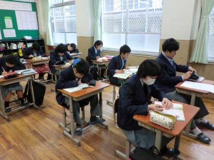 テスト一週間前に入っているので、朝の読書から朝学習に切り替えています。