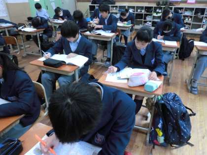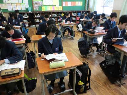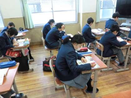 テスト一週間前に入って、朝の教室は毎日テスト勉強です。