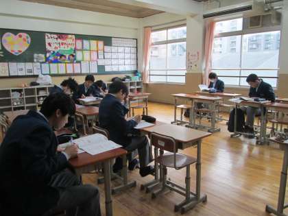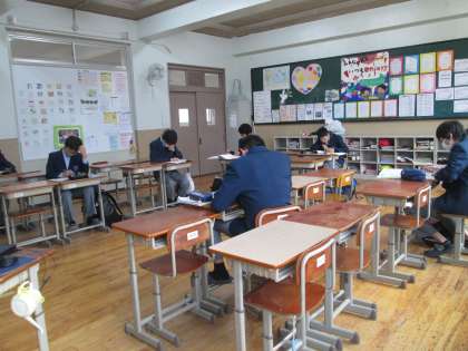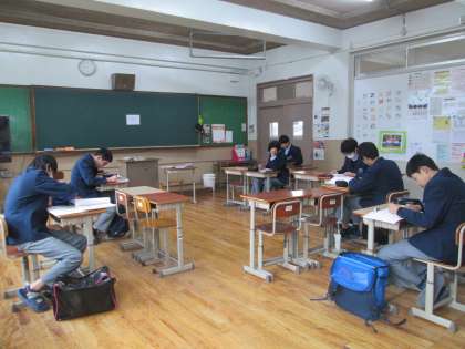 休業日の教室では、男子諸君が学習に熱く(?)なっていました。静まり返った教室に、「こつこつ」とペンの音だけが鳴り響いていました。