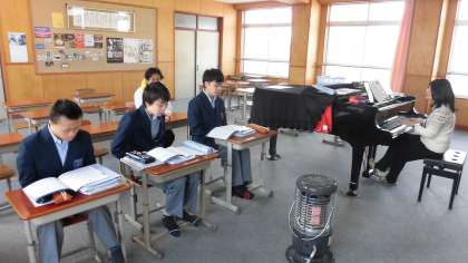 音楽の授業で,卒業式に向けて
