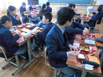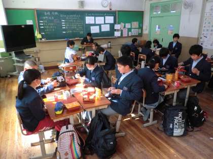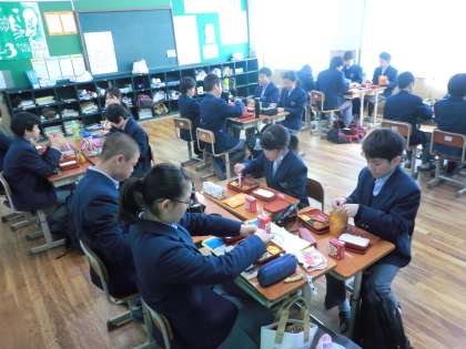 図書文化委員会の放送を聞きながら楽しい昼食の時間です。