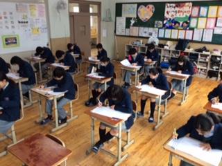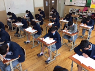 2年生第5回定期テスト1日目1限目は国語です。リスニングテストから始まりました。