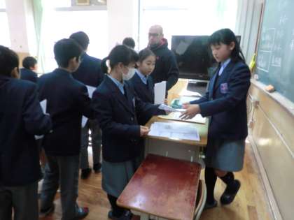 テストの答案用紙を回収です。