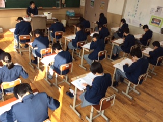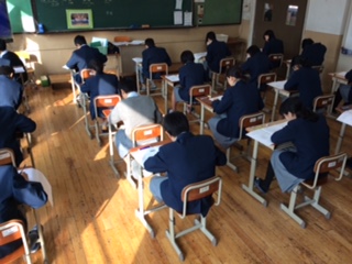 2年生第5回定期テスト2日目1限目。英語のテストです。リスニングテストから入りました。