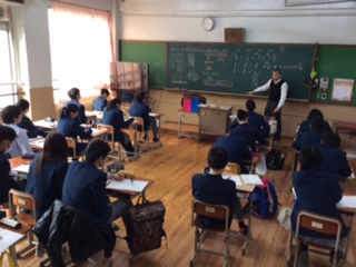 2年生授業の様子。2組は体育でサッカー。少し暖かくなってきているので、楽しいです。3組は国語で、パネルディスカッションをする。役割分担や進行計画を立て、準備しました。4組は数学で、確率。残りものには福があるって本当なのか学習しました。