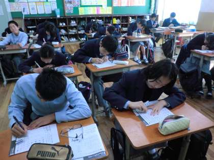 国語では硬筆で書写の練習、英語では過去のことを伝えようという学習です。