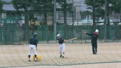 グランドで,野球部が