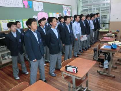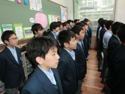 3年生の卒業を来週にひかえて、1年生は贈る合唱の練習を終学活でもはじめました。