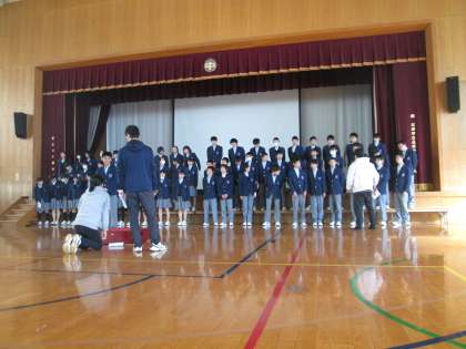 今日の6限は、「3年生を送る会」の体育館練習をしました。どんな内容なのかは、ここには書けませんが、3年生にお披露目する出し物の通し練習をしました。