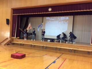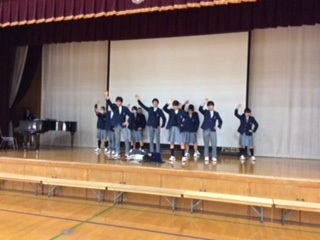 送る会の練習。2年生舞台を使い、一通り行いました。また課題も見つかり、修正頑張ってます。