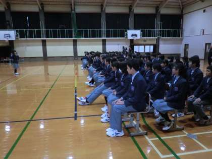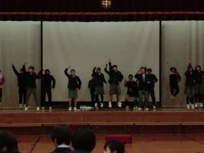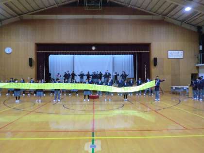 5時間目の学活で、1・2年生が合同で、3年生を送る会の通し練習をしました。
