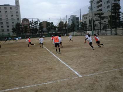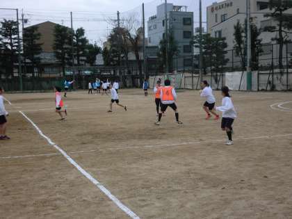 女子は、グラウンドでハンドボ−ル!