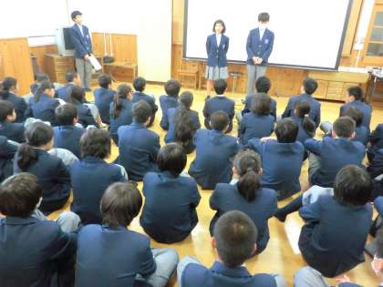 各学級の反省や振返りを、評議員がまとめて代表して報告してくれました。