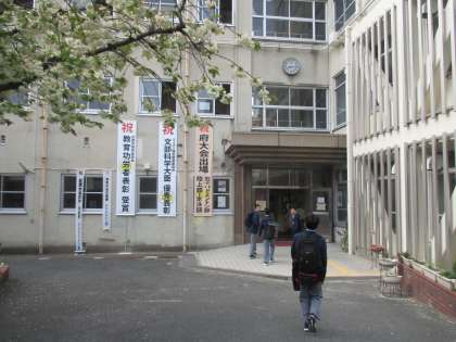本日は午後より入学式です。校門入口のサトザクラが満開を続けてくれています。