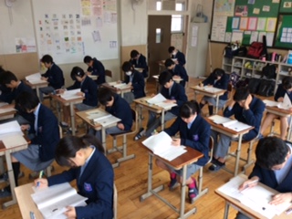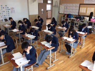 本日の3年生は、全国学力・学習状況調査です。1限目は国語Aから。