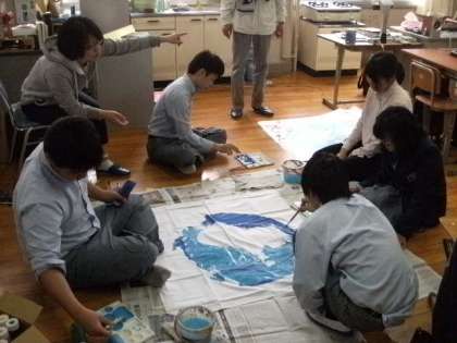 みんなで、学級旗の制作です。