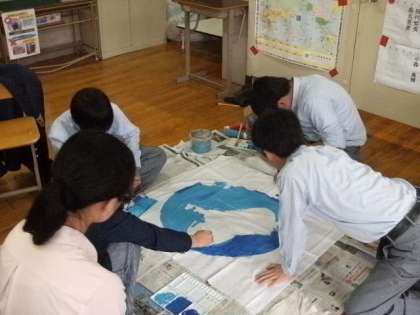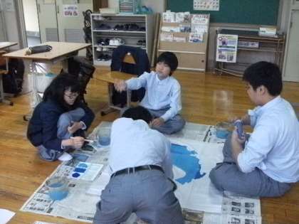 4人で協力して、色塗りをしました。完成が楽しみですね!
