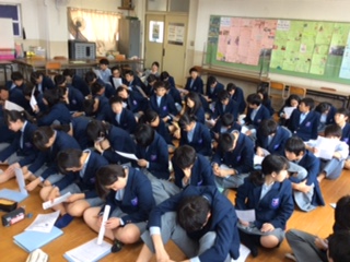 3年生進路学活第三段です。オープンキャンパスの話や学校の場所の話をじっくり聴きました。